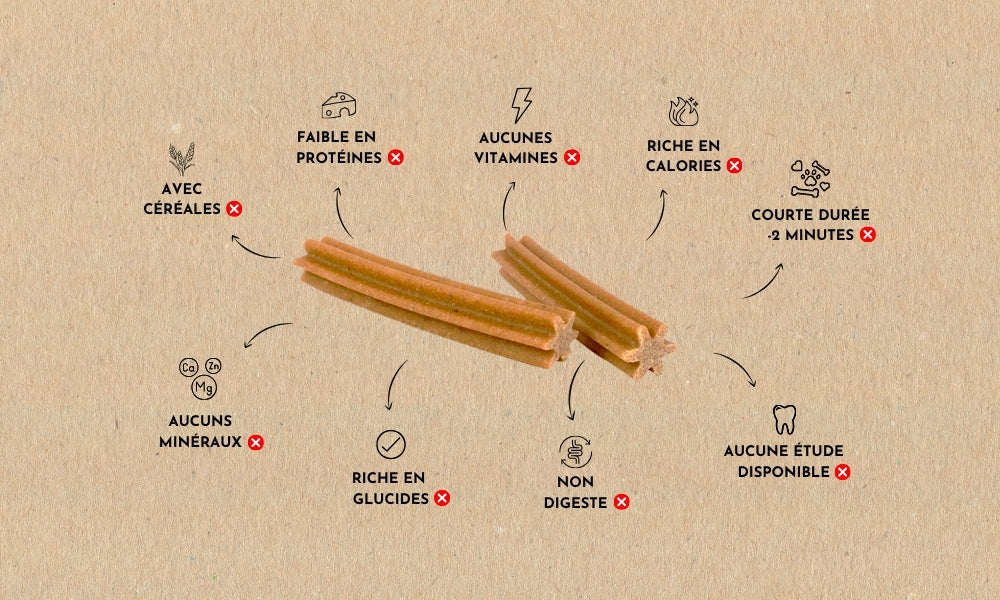 100 % naturels, riches en protéines, sans arômes, sans colorants ni conservateurs, ils offrent aux chiens un moment de plaisir sain… et de mastication utile.