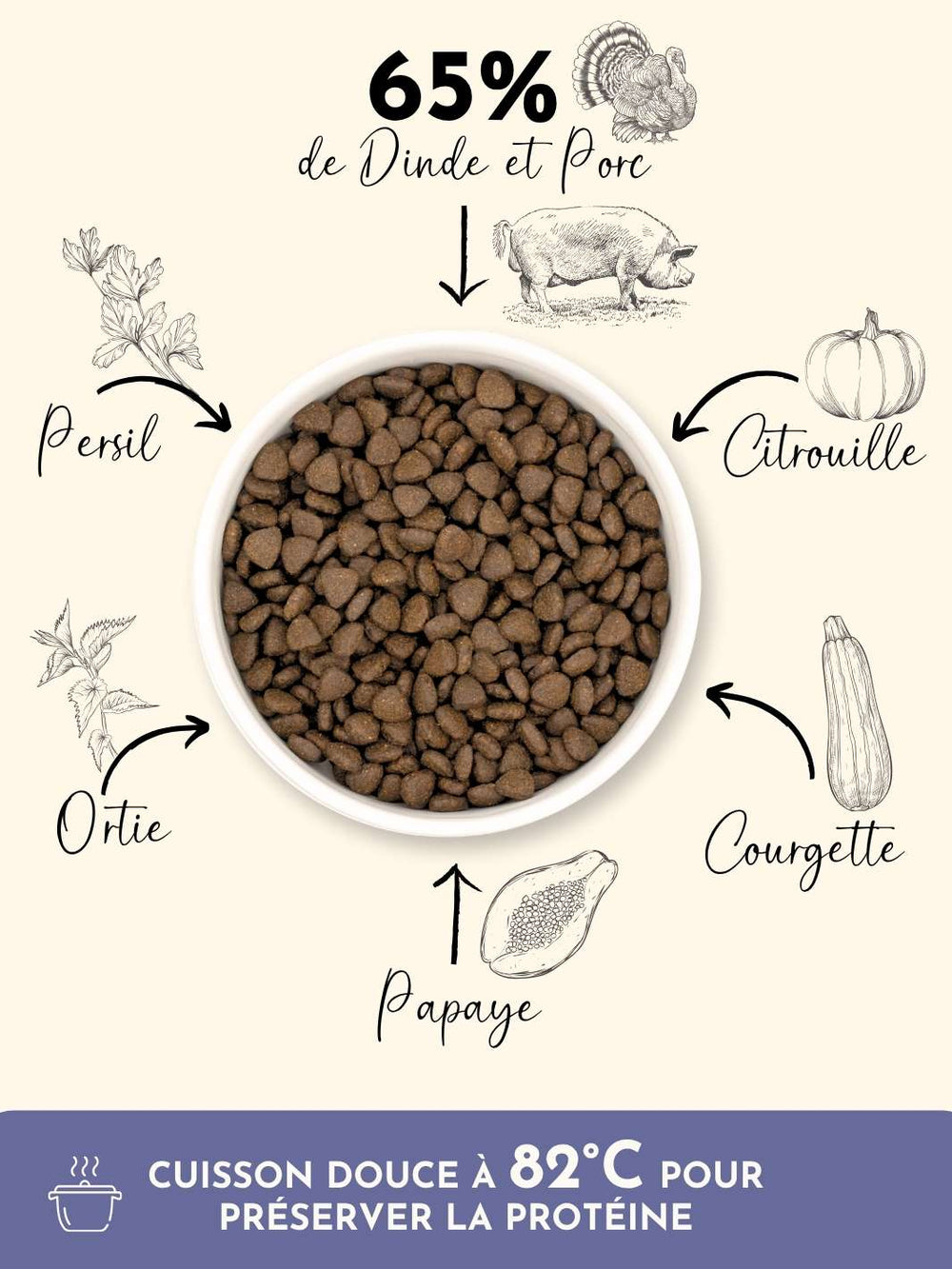 🦃 Croquettes Dinde & Cochon : énergie douce, pauvre en glucides