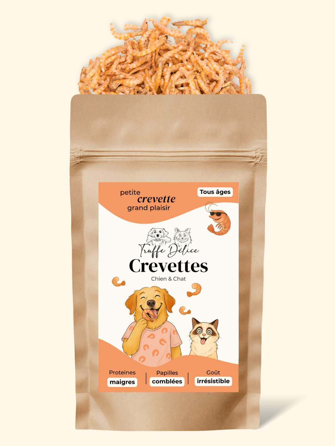 Bonne nouvelle, nos crevettes et toutes les autres friandises de la marque Truffe Délice conviennent à tous les chiens et chats. Que votre toutou ou matou soit petit, grand, fin, enrobé, jeune ou âgé, les crevettes sont faites pour lui !